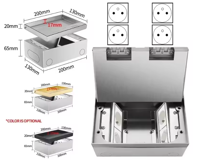 קופסא לרצפה יבשה מלבנית 8 מודול , כיסוי מתכת להתקנת אריח